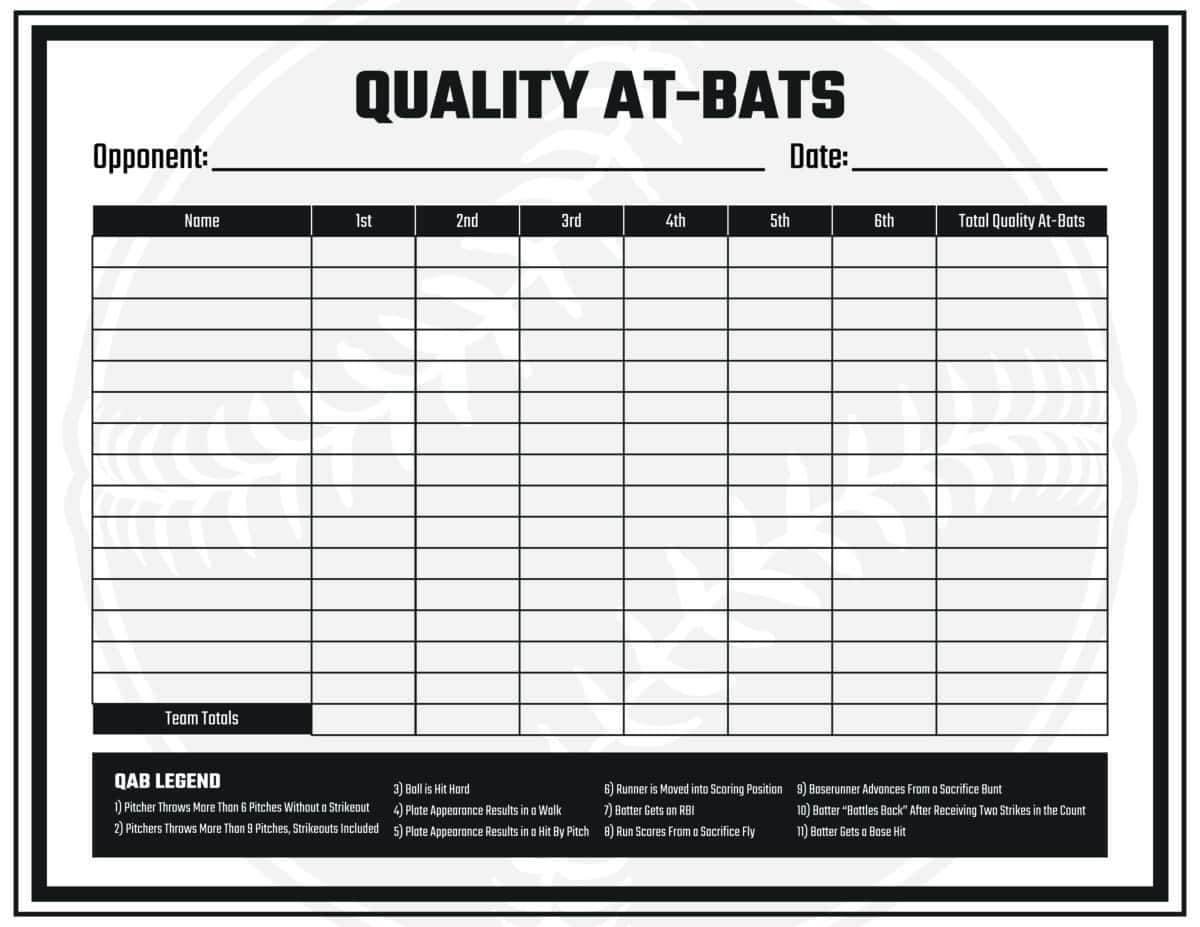Each Quality At-Bat chart below allows you to input your opponent, the date, and up to 15 players.
